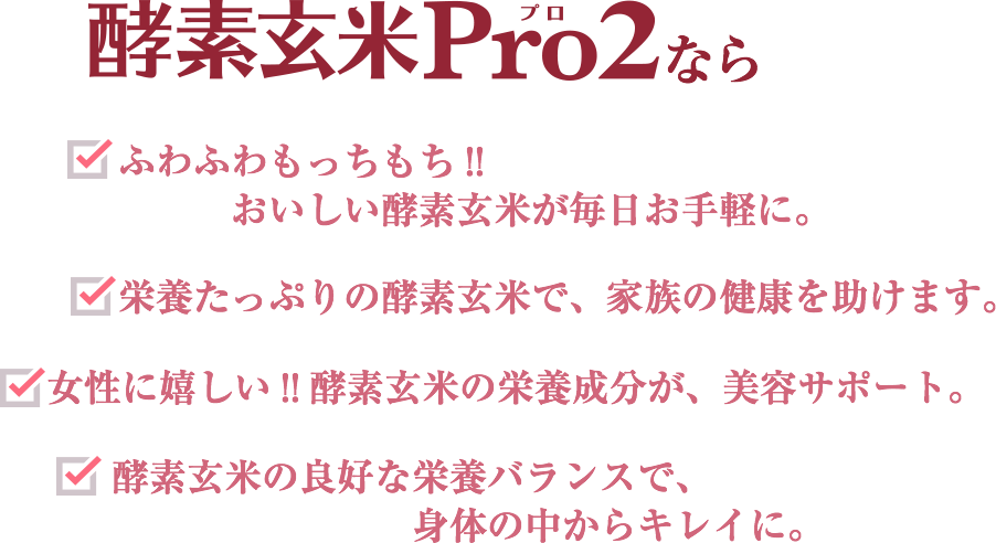 しかも『酵素玄米Pro2』による炊飯保温熟成システムで、柔らかく食べやすい「発芽酵素玄米ごはん」ができます。